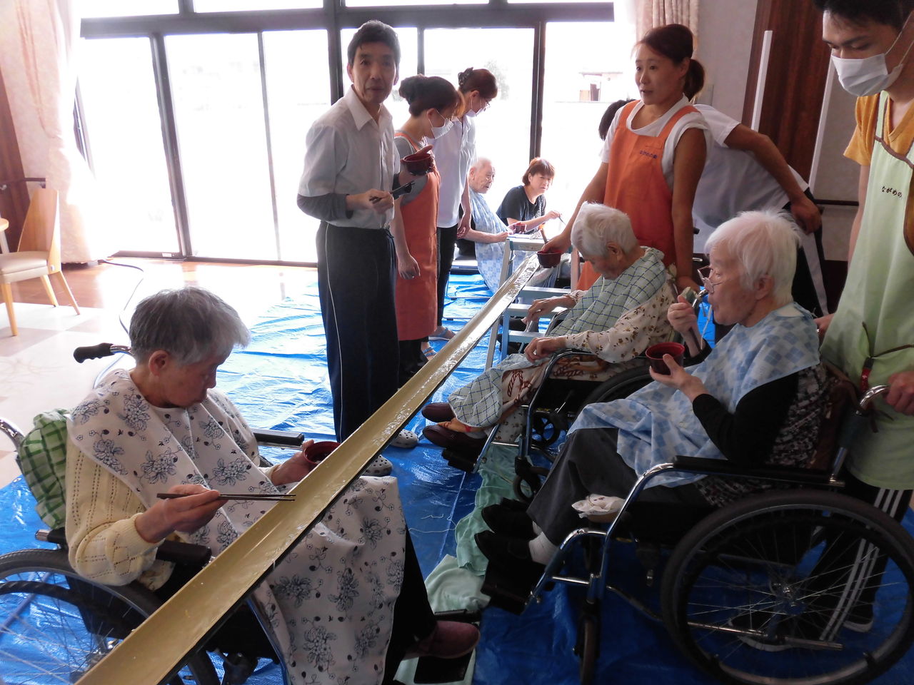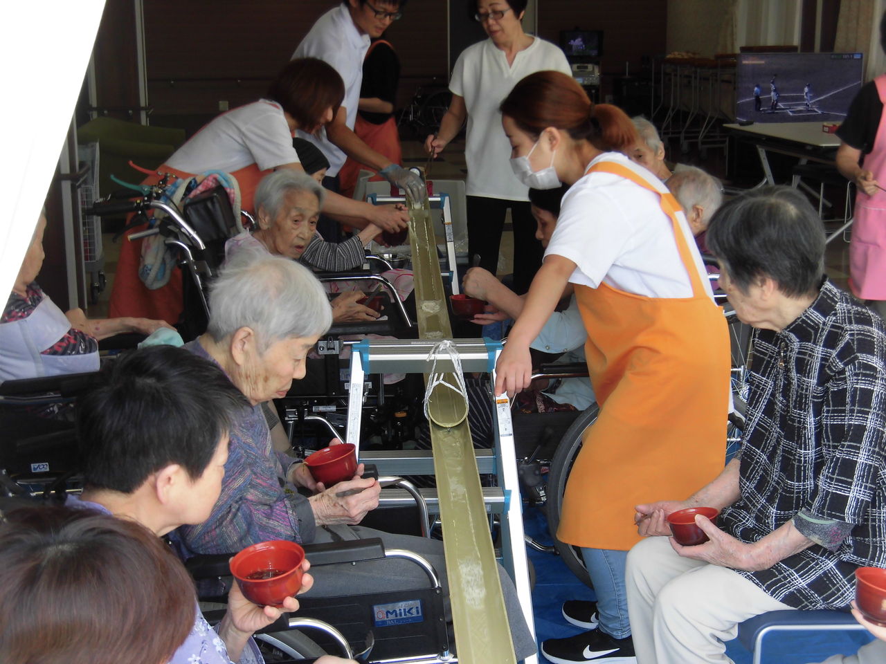 当施設では毎年この時期にレクリエーションとして流しそうめんを行います![]()