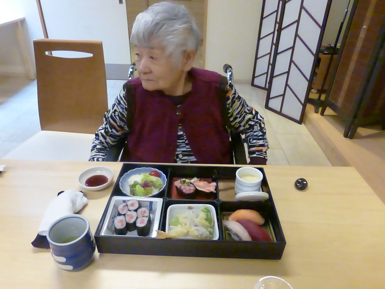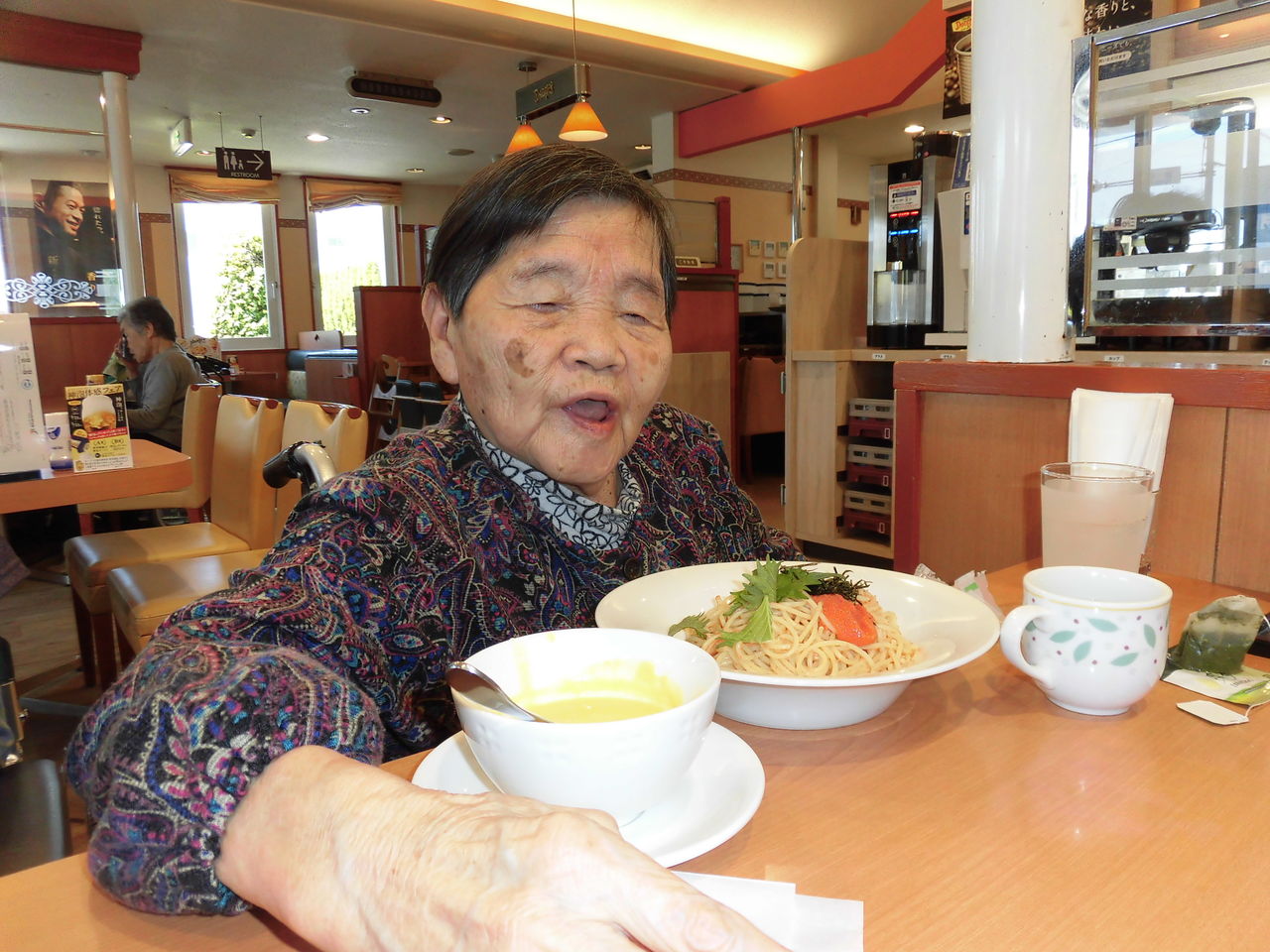 デニーズでは生姜焼き定食やミックスフライ定食、パスタなど美喜仁館、栄寿司さんでは、皆さんそれぞれ海鮮丼やお寿司・お蕎麦・うどんなど注文され、おいしく召し上がられていました。皆さんとても素敵な笑顔が見られていました。