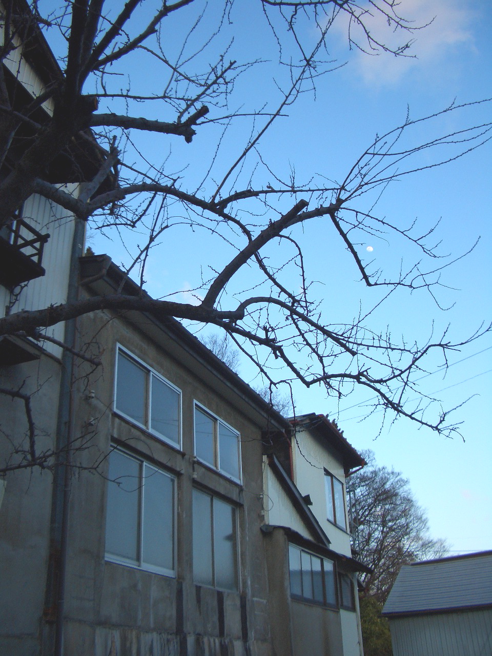 昨日の夕方、「鶴の湯」の上にきれいな月が見えました。