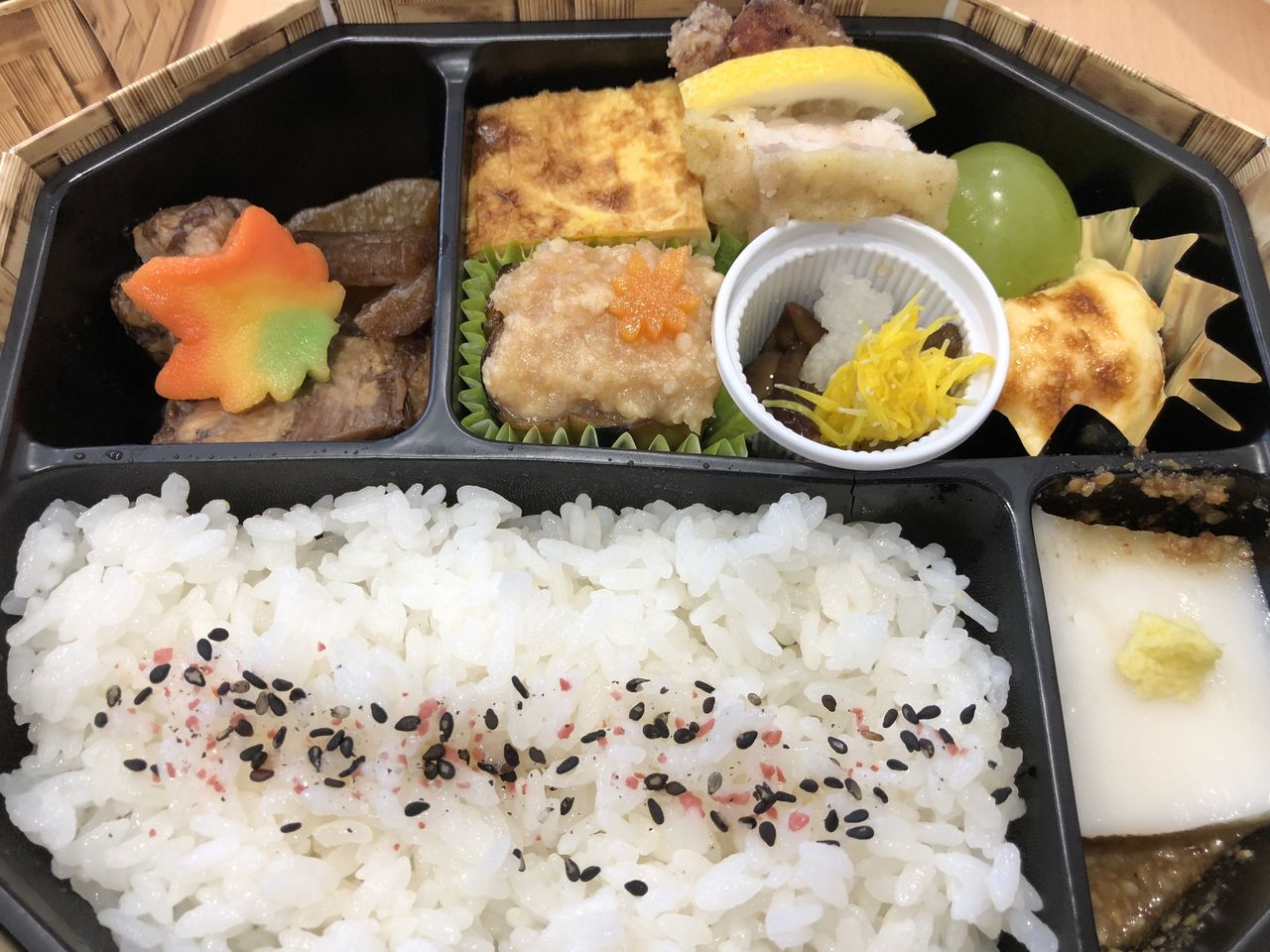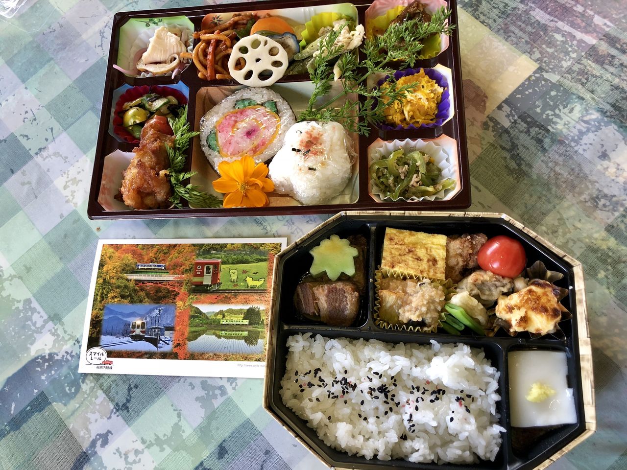 地元のお母さん「kimoto」さん手作りの「ほほ笑みこまち弁当」※写真 上