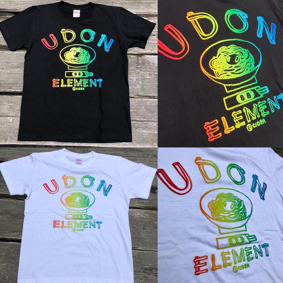かせきさいだぁ画伯デザインのUDON ELEMENT Tシャツに夏の新色レインボーグラデーション登場!これを着れば一目でうどん好きとわかる1着!夏休みのうどんツアーはこの Tシャツを着て、うどん好きをアピールしよう(≧∇≦)