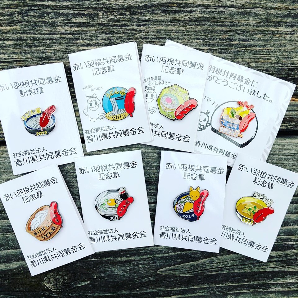 赤い羽根xうどん県ピンバッチ2019