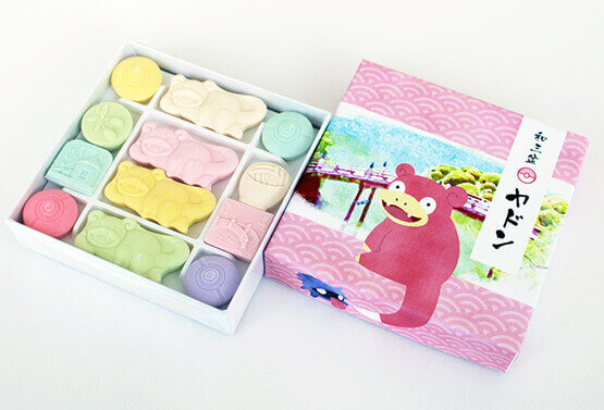 香川県の東部(東讃)の限られた地域で生産されている、200年以上続く讃岐古来からの伝統的な産品、サトウキビから取られた砂糖が原料で、口溶けの良さが特徴の高級な和菓子を「ヤドンの和三盆」として商品化!今回、ヤドンをかたどったものや特別パッケージの商品をご用意しました!甘いと言われるヤドンの尻尾のような、まろやかで上品な味をご堪能ください!