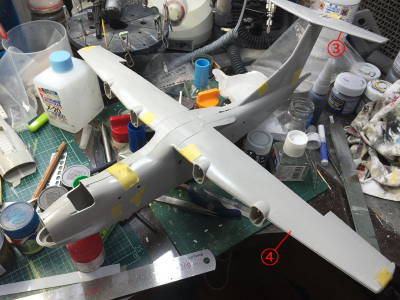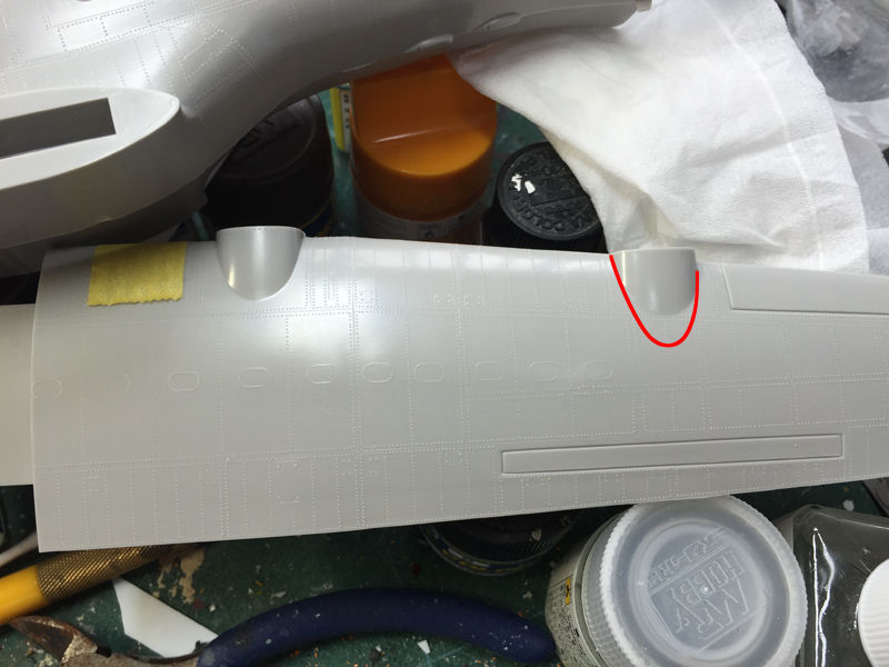 続いては主翼。主翼は上下面とも共通で後桁が境界になっています。