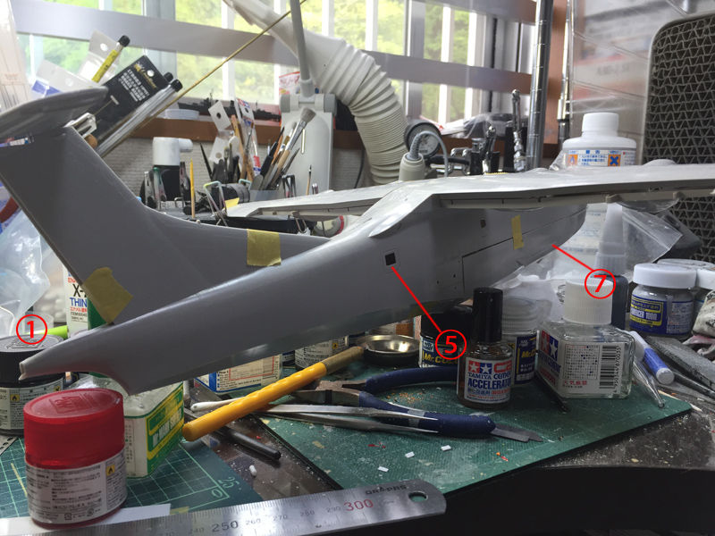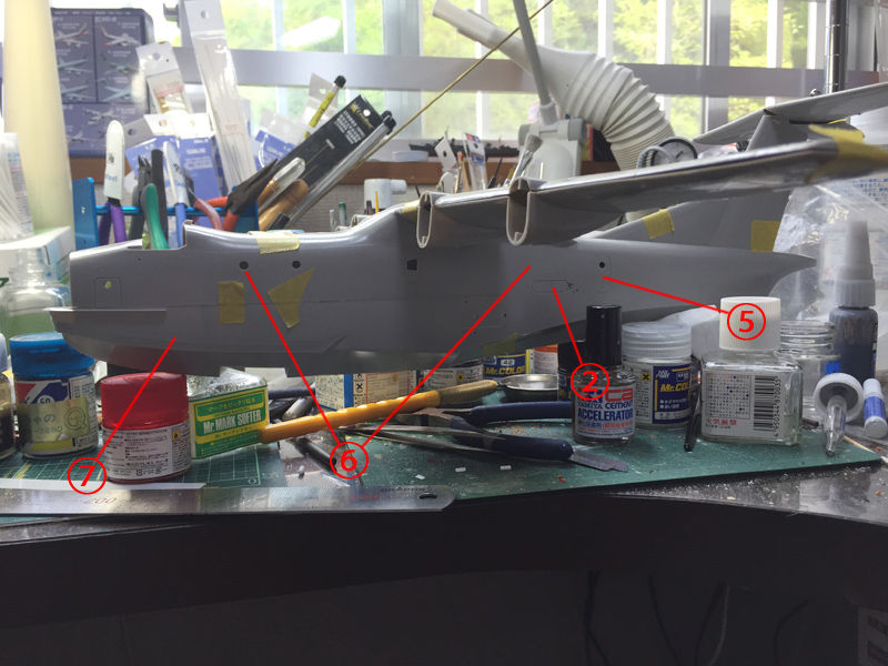 まずは艇体から写真の通り、主翼前桁と繋がるSTA11466.6が境界になっています。