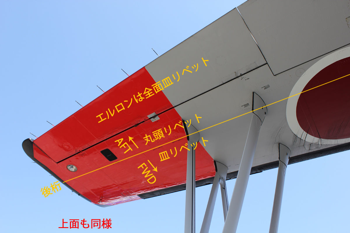 後方は「気流乱れまくるし表面平滑度とかどうでもいいよ。それより皿頭リベット打つのメンドイから丸頭な!」ってことで、丸頭鋲が使われてる。