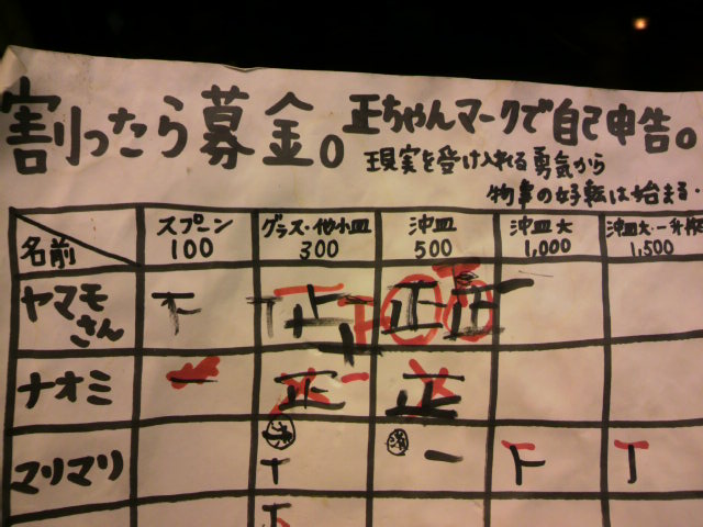 「中川酒店割ったら募金(お皿を割ったら募金するシステム)」