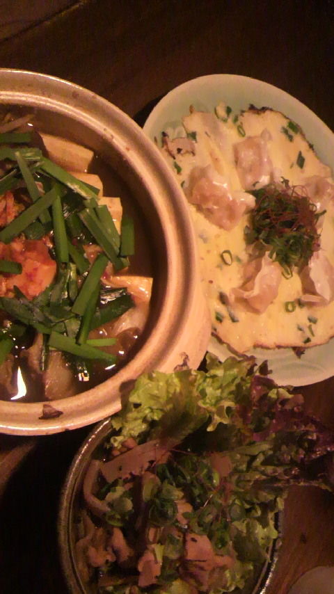 (チヂミにギョーザがのってます。お酒に合う~)