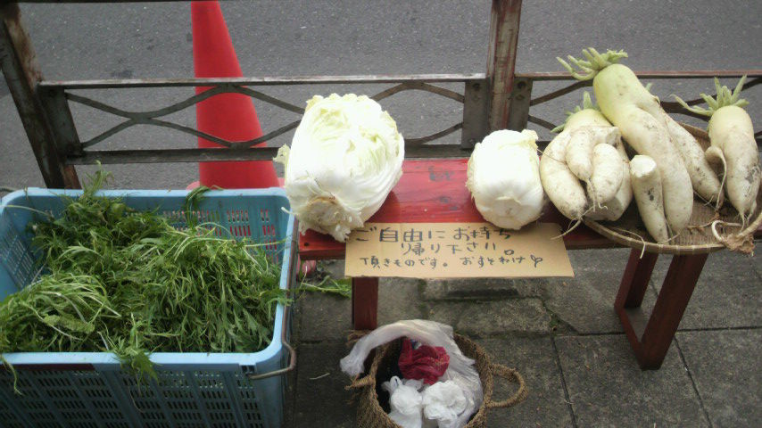 goya前に「ワイルド野菜をご自由にどうぞ」と並べてみたり。。。