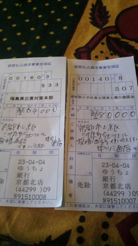 日本赤十字社に八万円、福島県災害対策本部に六万四千円を