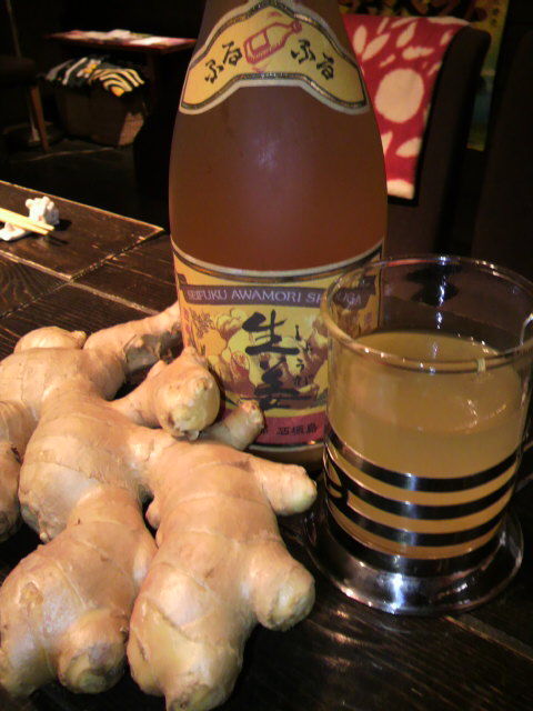 請福泡盛生姜と天野酒荒走り。