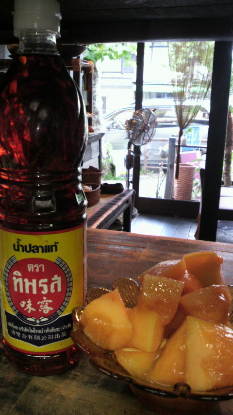 スイカに塩のような感覚です。(以前バリ人に、スイカに塩かけて食べると言ったら、信じられないと笑われた記憶があります。ターくんからナンプラーをかけて食べると聞いたとき、同じ反応してしまいましたが。)