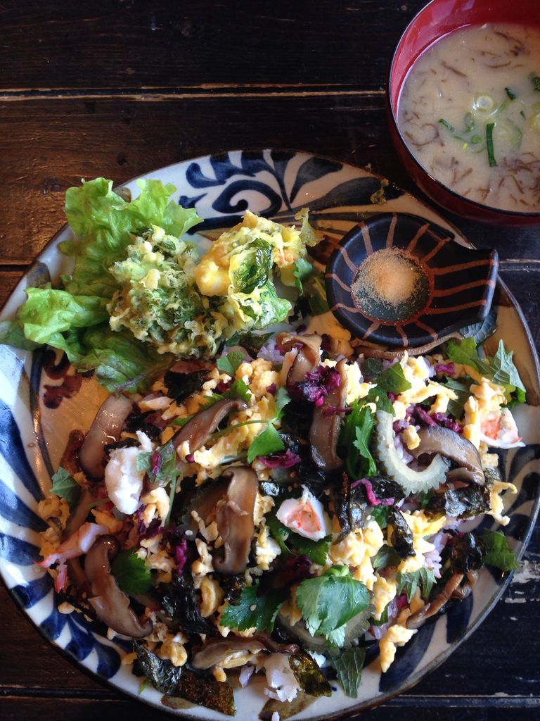 モズクの天ぷら&お惣菜付き。