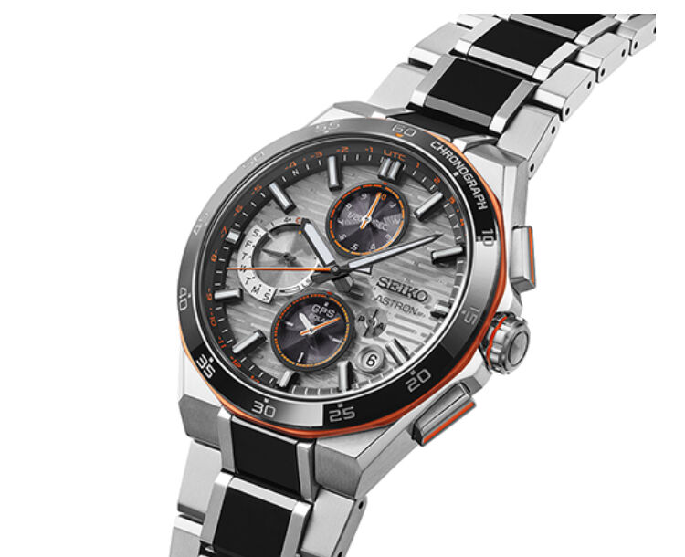 ベゼルとブレスレットの中駒にブラックセラミックスを組み合わせ、