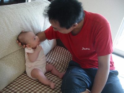 連休の初日は、ゆいと同じ5月に赤ちゃんが産まれたまーちゃんの会社のお友達夫婦が遊びに来てくれました