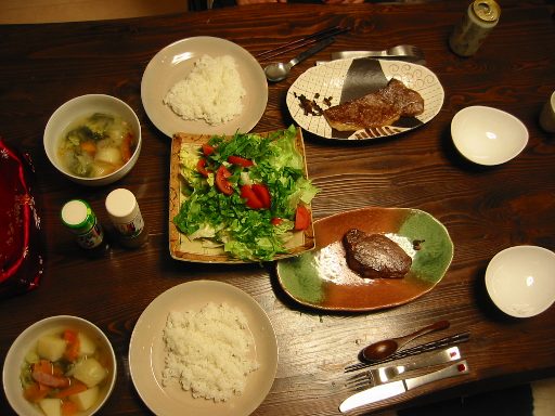 そのおいしいお肉で、まーちゃんが誕生日ステーキディナーを作ってくれました。
