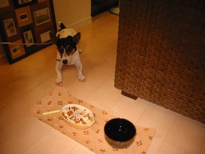 大吉なんぞは犬用のケーキをお土産にもらって幸せいっぱい、のはずだったんですが・・・ケーキの下にひいてあるビニールも一緒に食べようとしてしまい、私に無理矢理口をこじあけられ、散らばったケーキを取られまいとあせって食べる羽目になってしまいました。