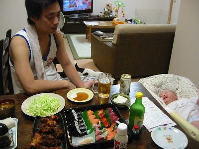 性別が判った日、お寿司をかってお祝いしました。前回の検診で、「おそらく女の子でしょう。」と言われ、何故だか男の子だろうと思っていたまーちゃんは「あ〜〜・・そう・・」と意外な様子でした。