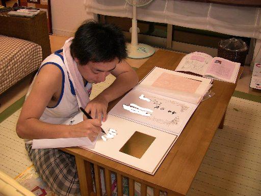 緊張しながらゆいの名前を書くまーちゃん。
