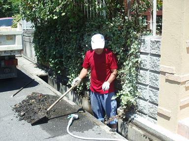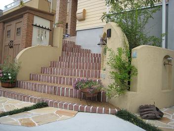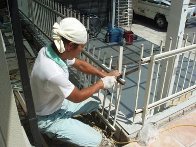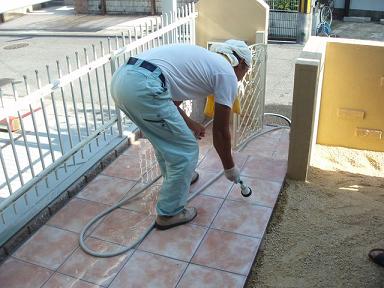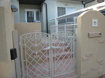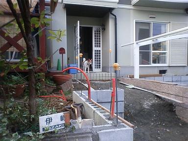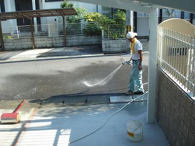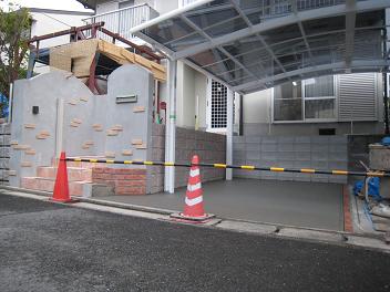 こちらの門柱もまだ1回目の塗が終わったところ。