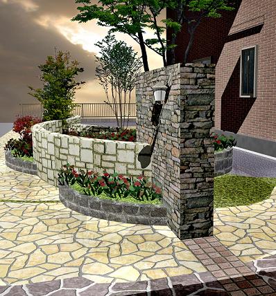 こちらが門柱越しに眺めたお庭の完成イメージ図。