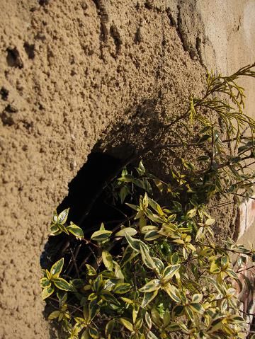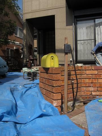 門柱の前面壁から、上部オレンジ色部分だけが、