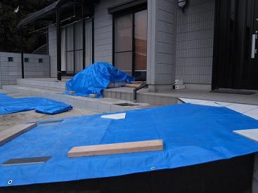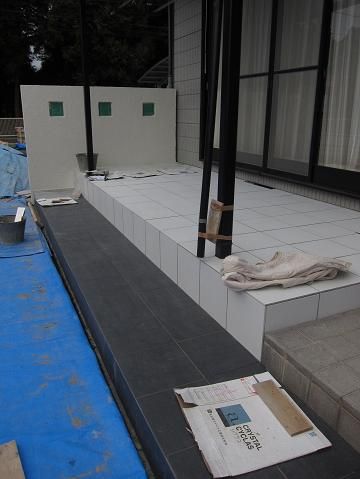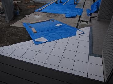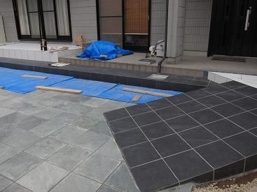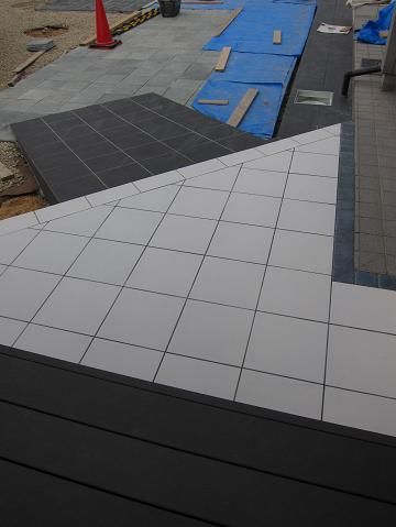 玄関ポーチにホワイトタイルを継ぎ足して、増設