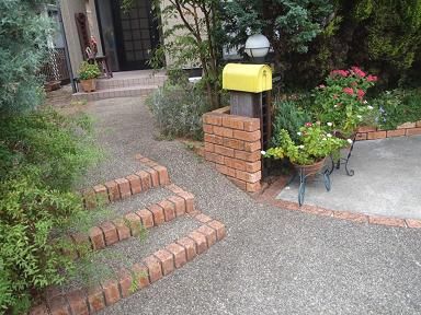 門柱脇の入口から、玄関ポーチへと向かうゆった