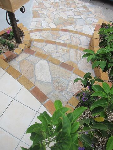 めました乱形石材敷きの階段が、緩やかな曲線を