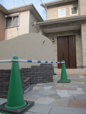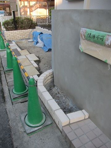 既設の化粧ブロック積み仕上げの門壁も、その