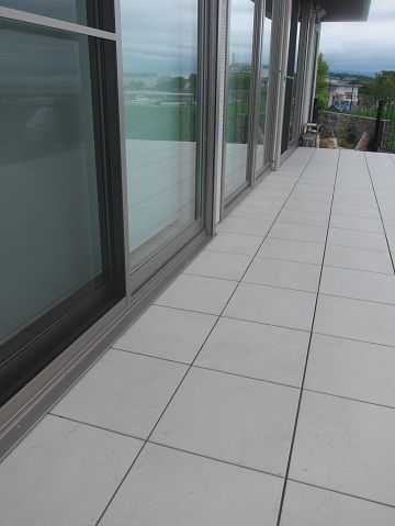 建物掃き出し窓に面したお庭の全面を、タイル貼