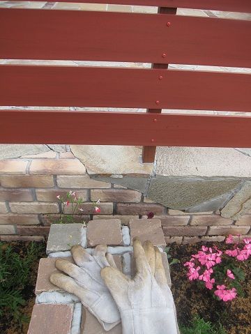 本日ガーデンアイテム等の部材取付作業を行って