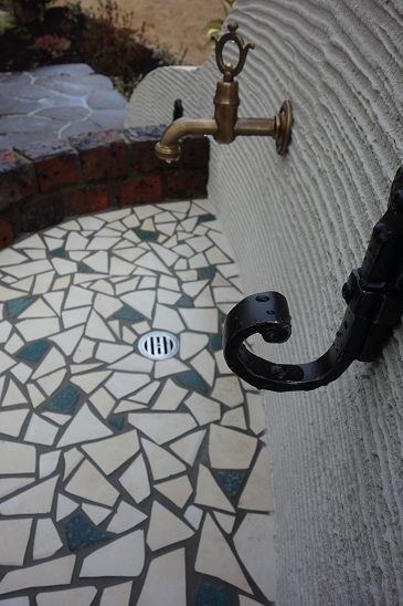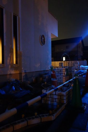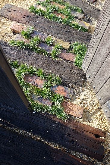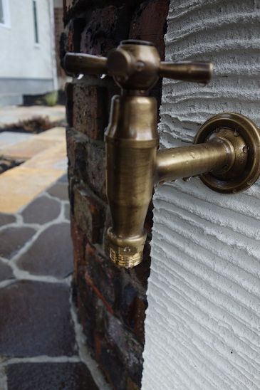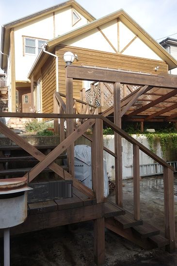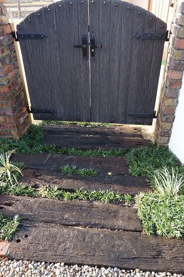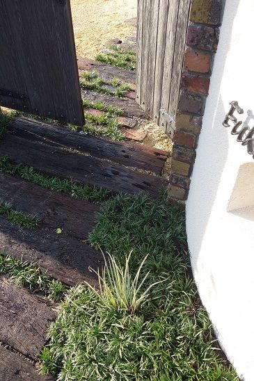 塗り壁仕上げの塀と枕木とアンティーク調の