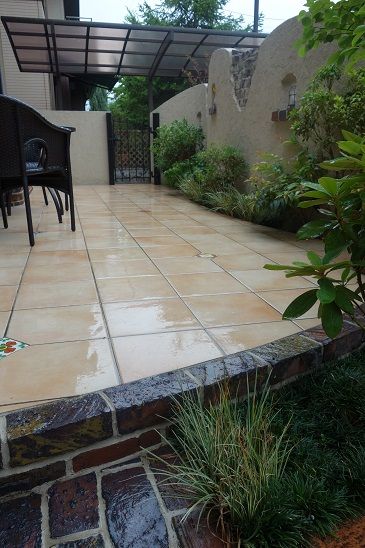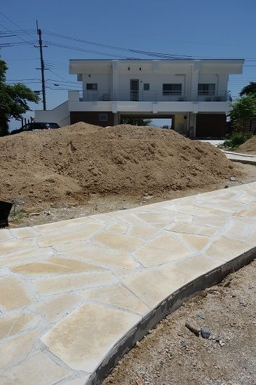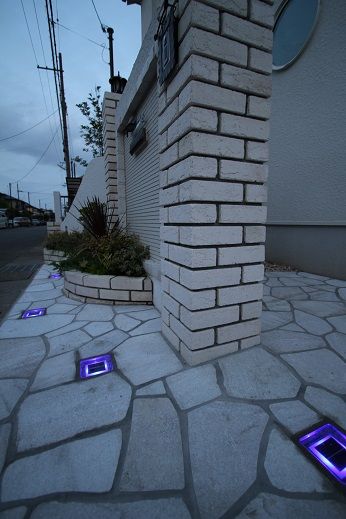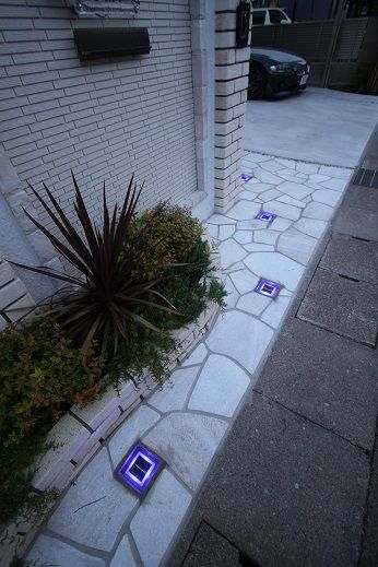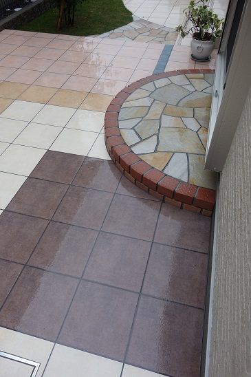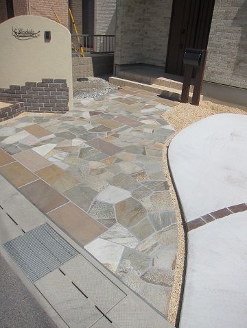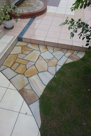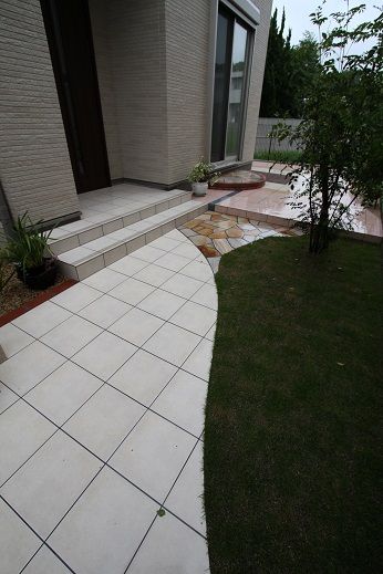 タイルを使って、アプローチを形成しています。