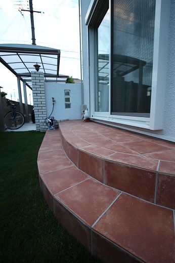 そんな曲線形状のアプローチから、タイル貼り