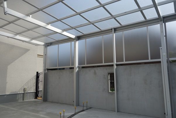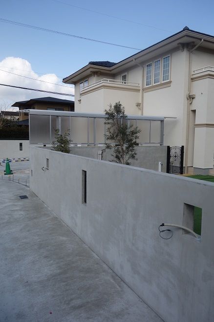 かなり広い面積のタイルテラスの周囲も
