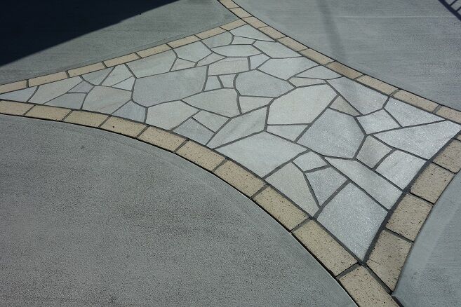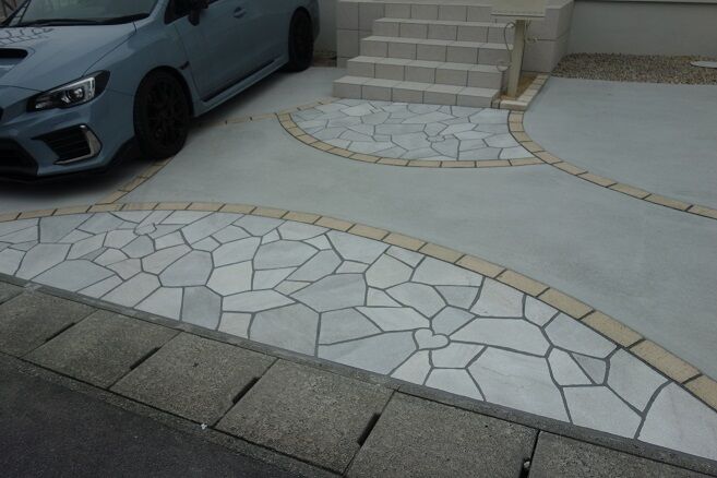 カラーの乱形石材敷きで仕上げています。