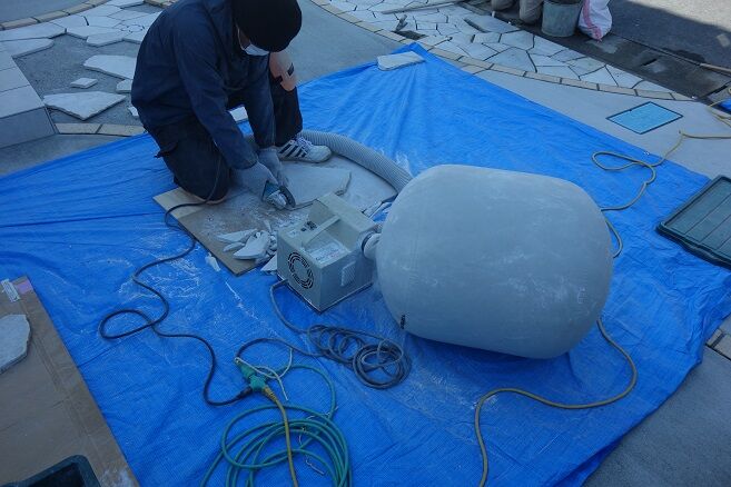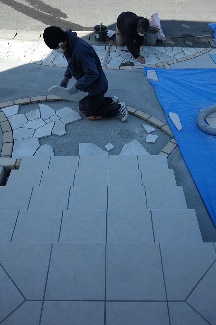 ダイヤ模様の石材を埋め込んでいます!