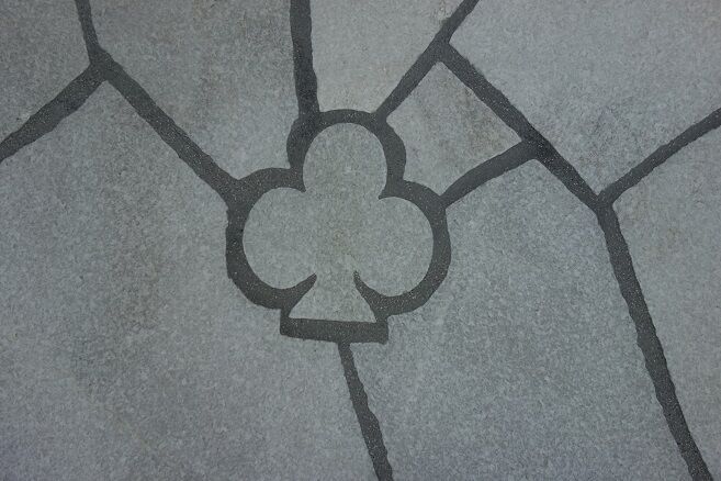 単純な形状のダイヤ模様は、わざと他石材