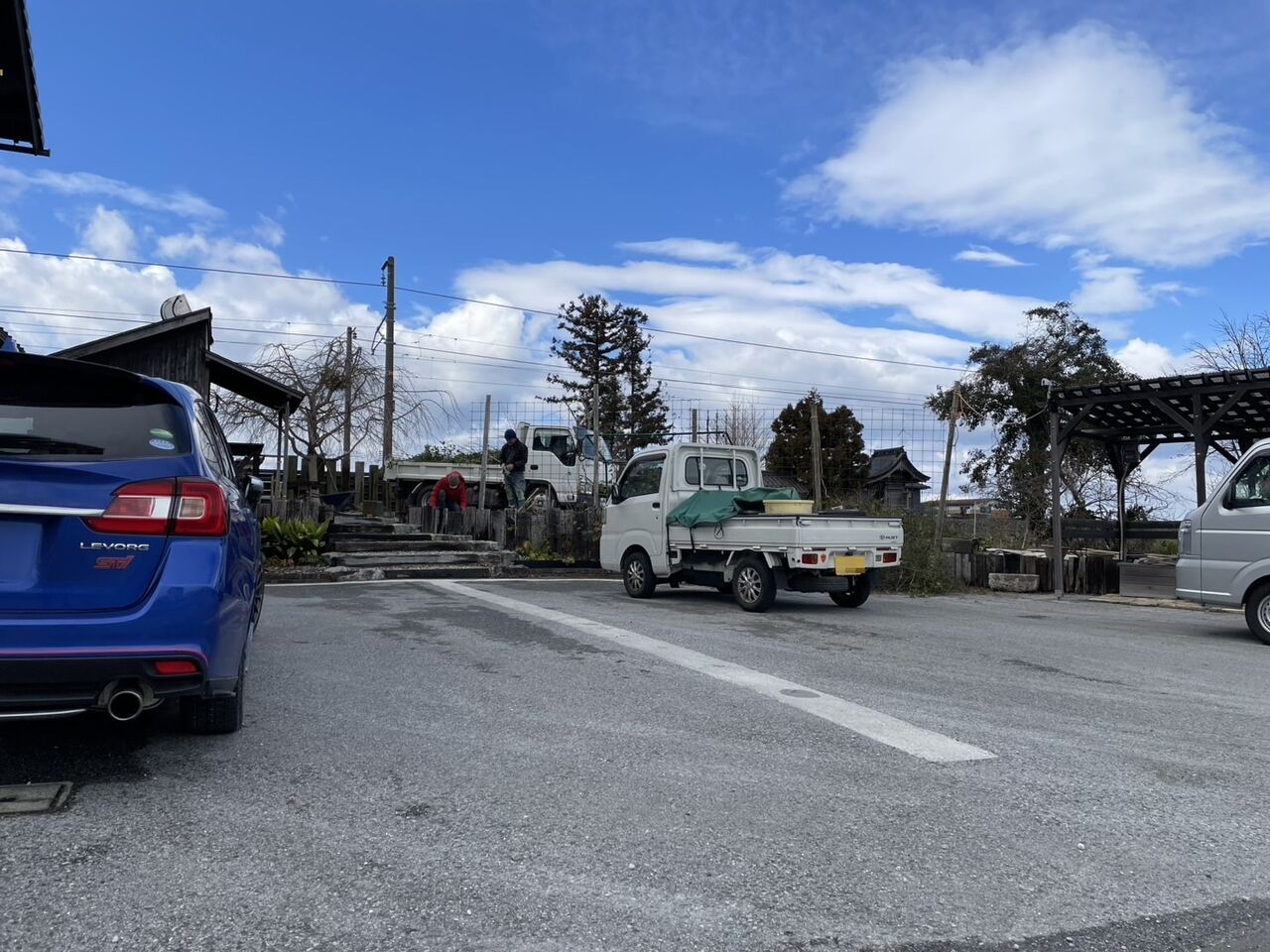 階段上のテラスの作業のスタッフの方も、毎日、