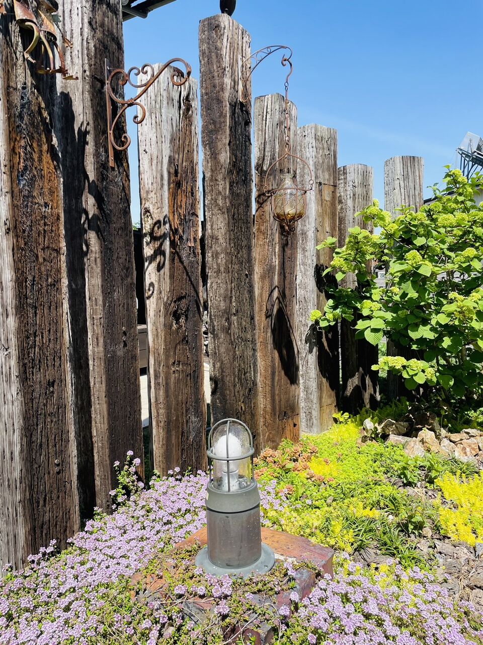 目隠しを兼ねて立てこみました天然枕木!