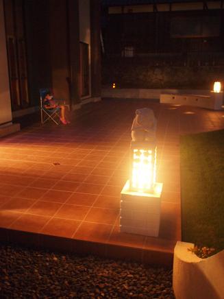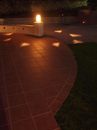 夜には、お気に入りの照明が庭を優しく照らし、