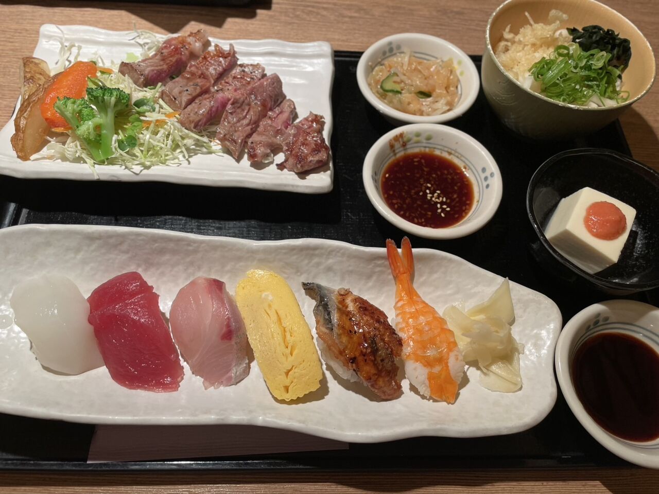 「ステーキ」と「にぎり寿司」の一条御膳