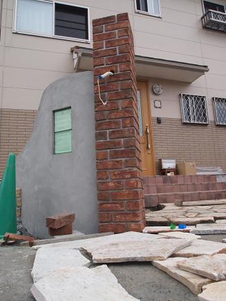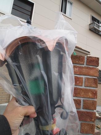 照明器具を載せたレンガ角柱に取り付けました