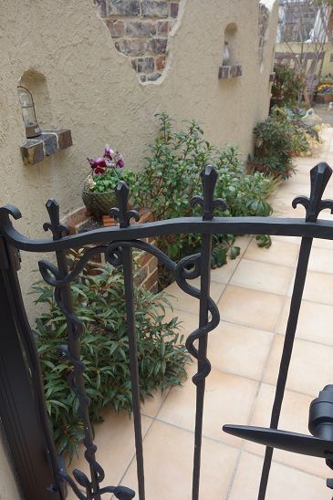 片開き式のアルミ鋳物門扉が待ち受けます。