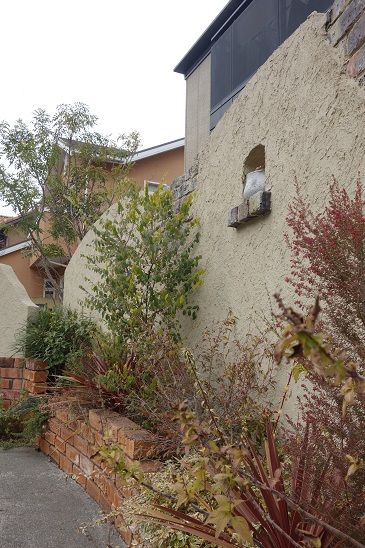 この壁面沿いに植物を植え込んで、数年もの