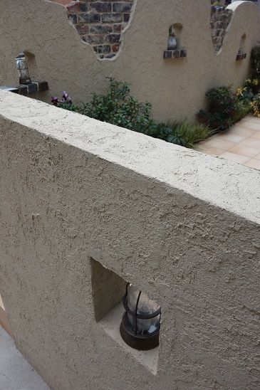 の塗り壁壁面のくり抜き穴にも照明器具・・・