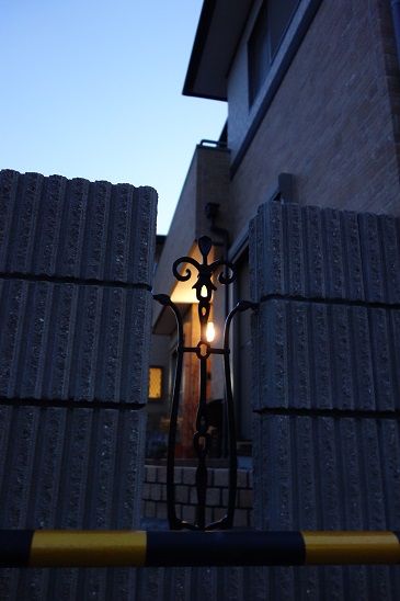 の上部に取り付けました照明器具&表札。