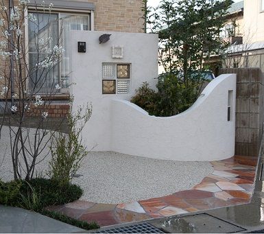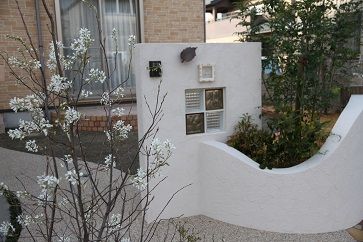 形状の門壁から曲線ラインを描いた壁面へ