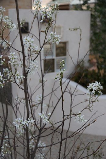 カーポート柱脇に植込みましたジューンベリー。